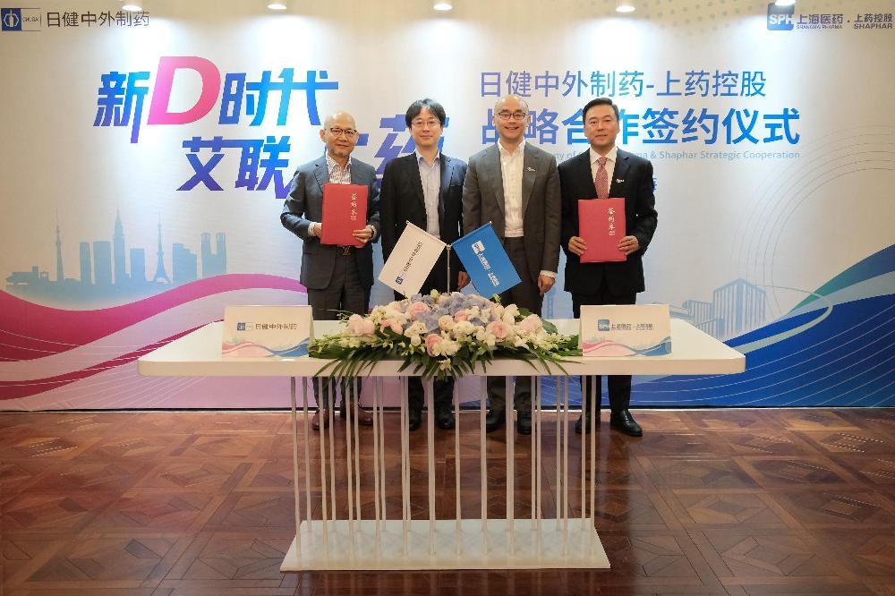 日健中外制藥董事長(zhǎng)笹井俊哉,日健中外制藥市場(chǎng)準(zhǔn)入本部長(zhǎng)、營(yíng)業(yè)本部長(zhǎng)彭北生,日健中外制藥高級(jí)全國(guó)商務(wù)總監(jiān)肖磊,上海醫(yī)藥執(zhí)行董事兼執(zhí)行總裁李永忠,上藥控股副總經(jīng)理唐鵬程、宋潞潞等雙方管理層代表出席儀式。